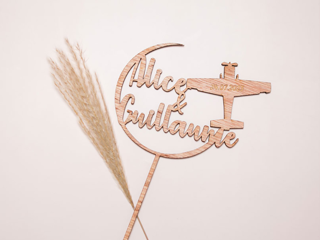Cake Topper en bois ou plexi (en option), pour décorer le gâteau de votre événement thème voyage et avion.