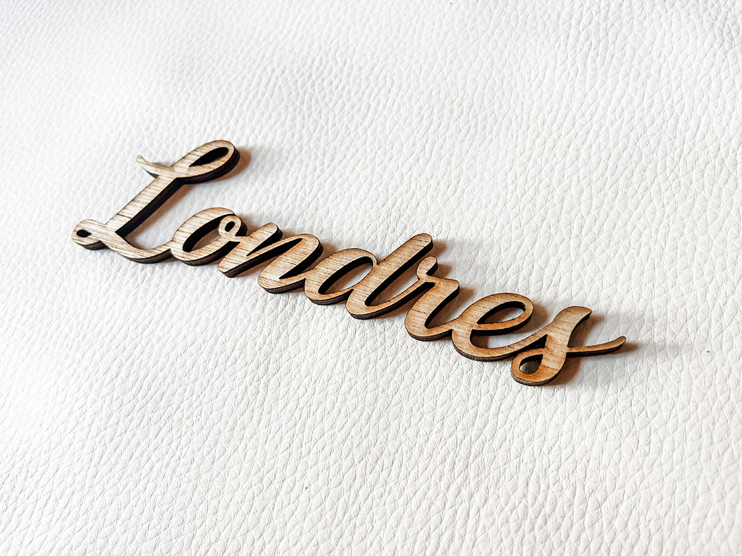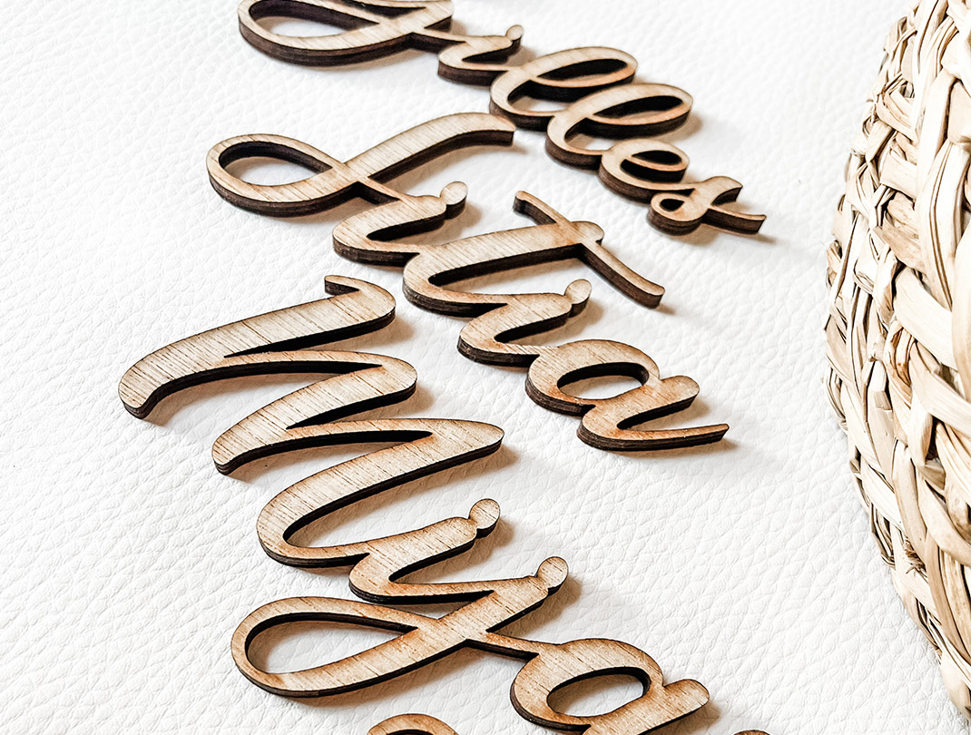 Nom de table découpé en bois, texte personnalisable